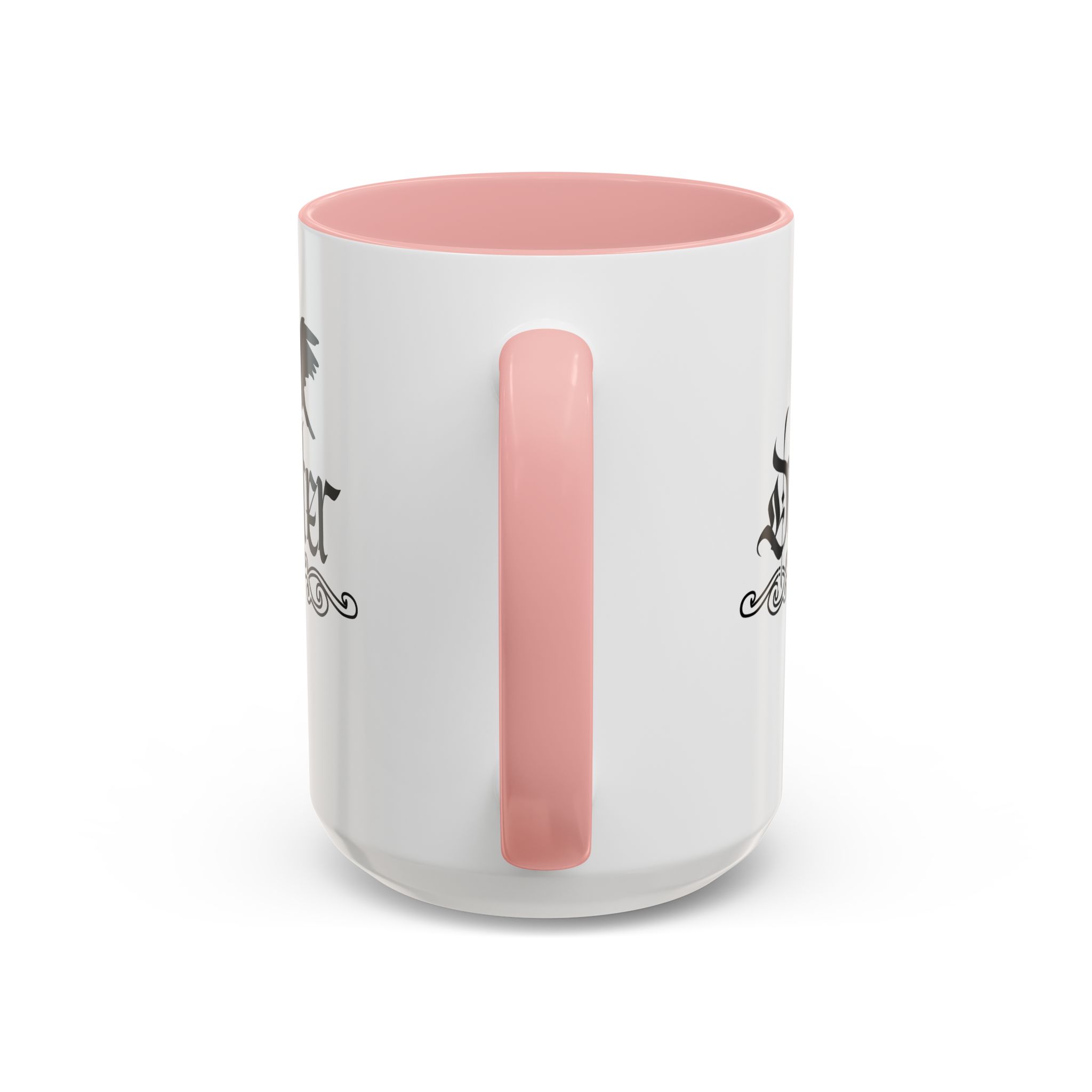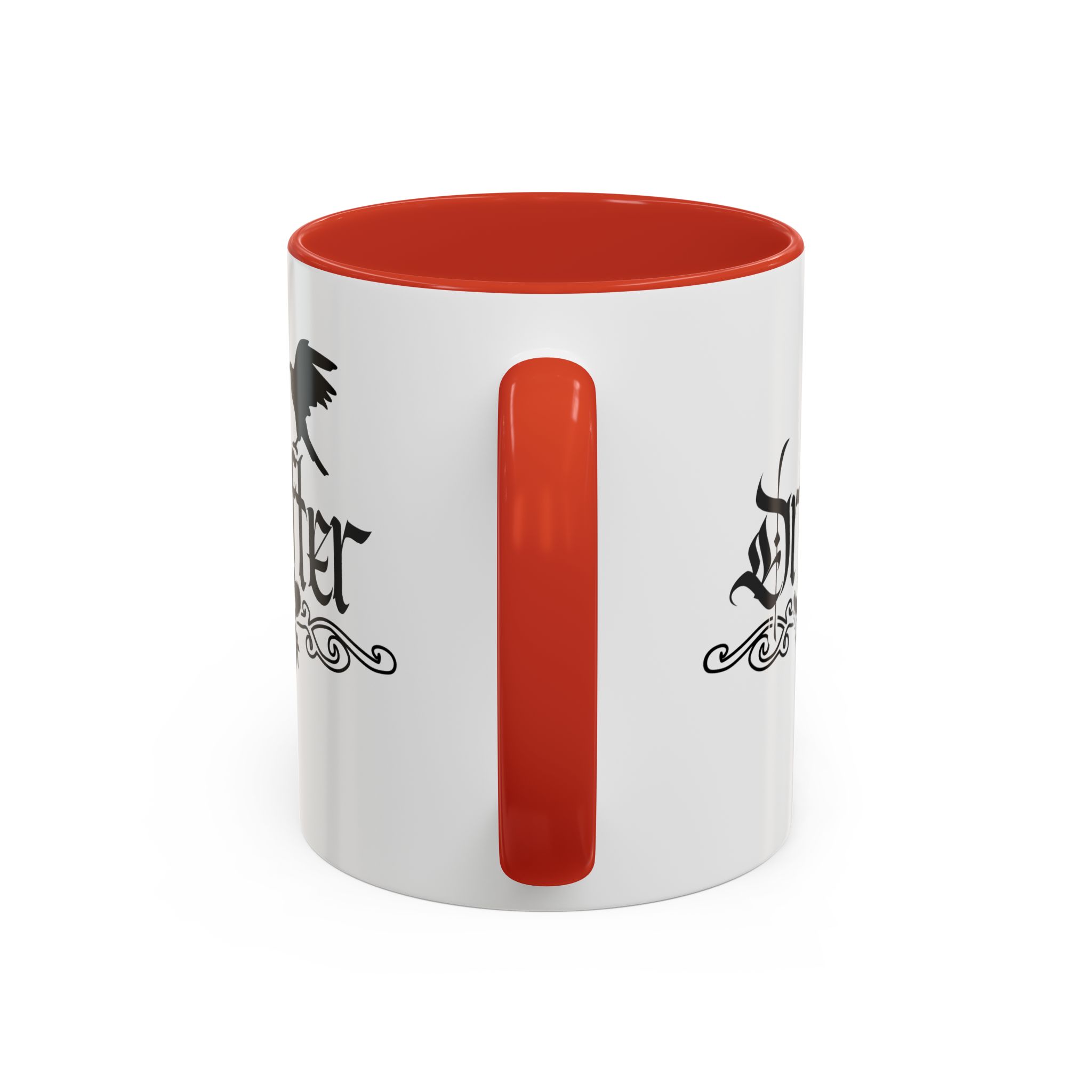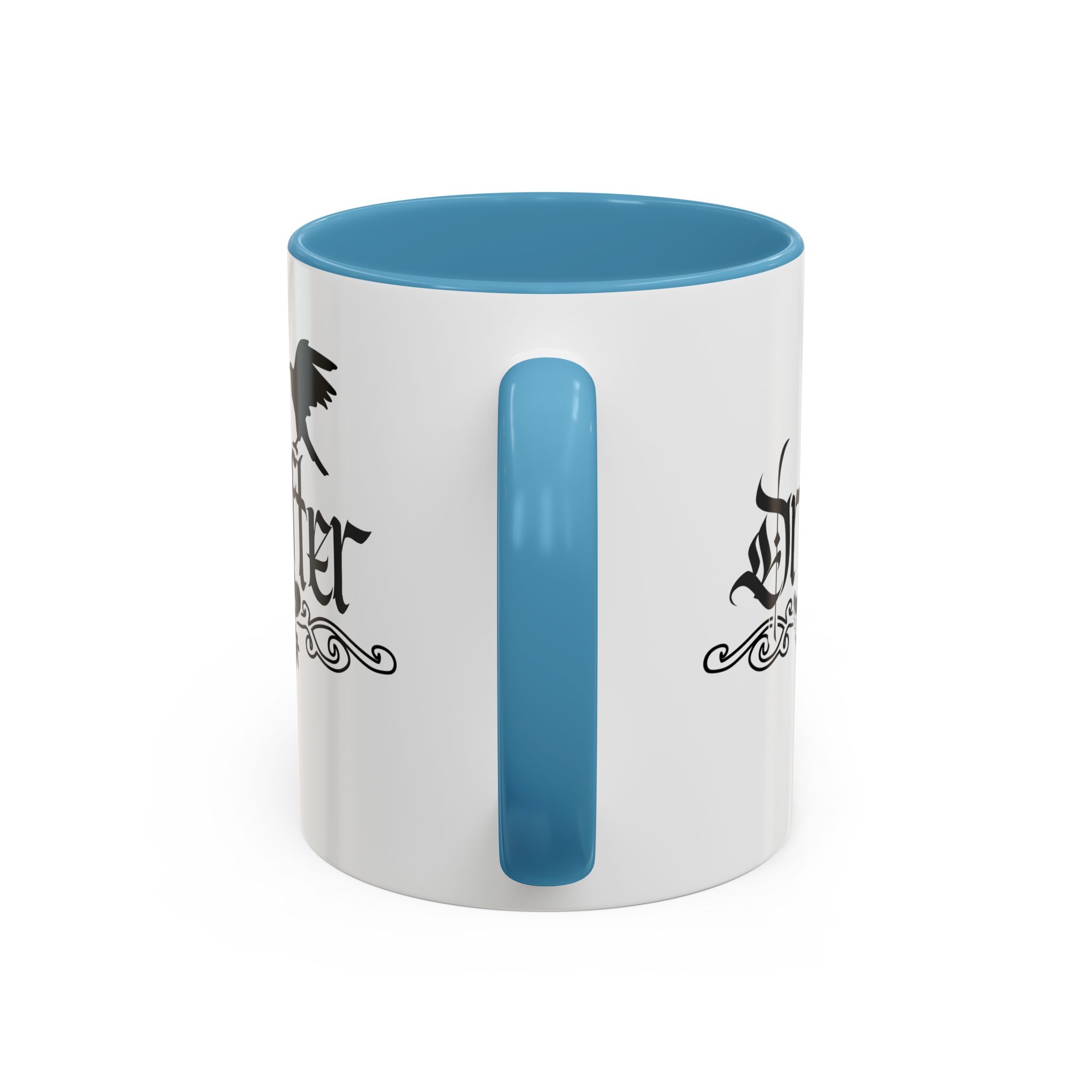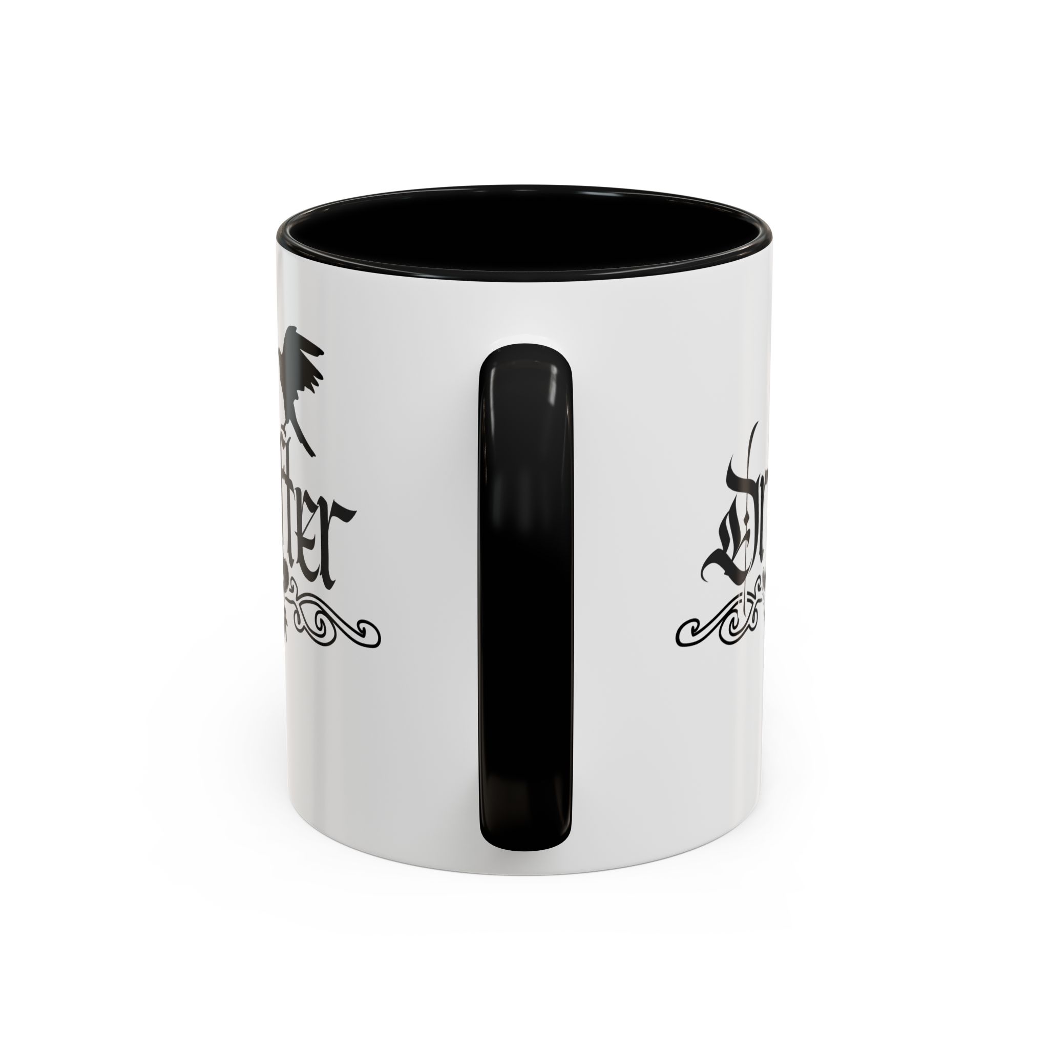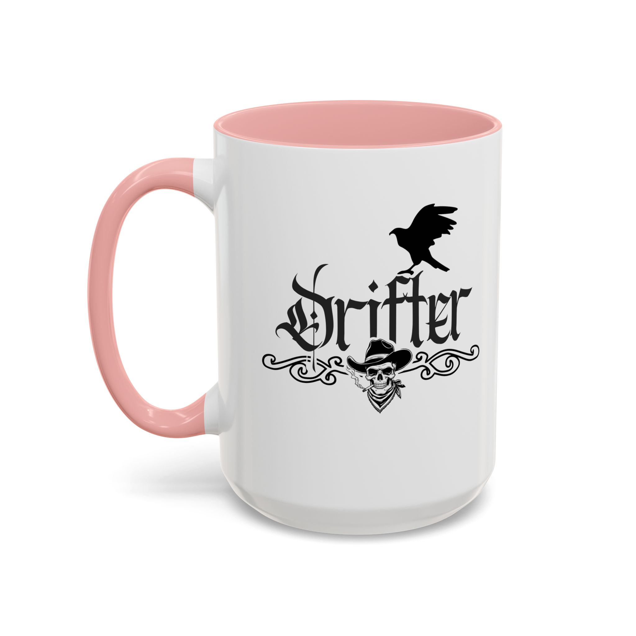 This ceramic accent mug brings a dark, wanderer energy to your morning ritual. A bold black interior and handle frame a stark white exterior, where gothic lettering, a crow in flight, and a skull-in-hat emblem sit like a badge of the road. Sipping from it feels like stepping into a story — smoke-swung diners, empty highways at dawn, and the quiet company of a restless heart. It’s made to be used: glossy finish, dishwasher- and microwave-safe, and available in two sizes so your coffee or tea keeps pace with your day. Choose a contrasting color handle to match the mood you carry.